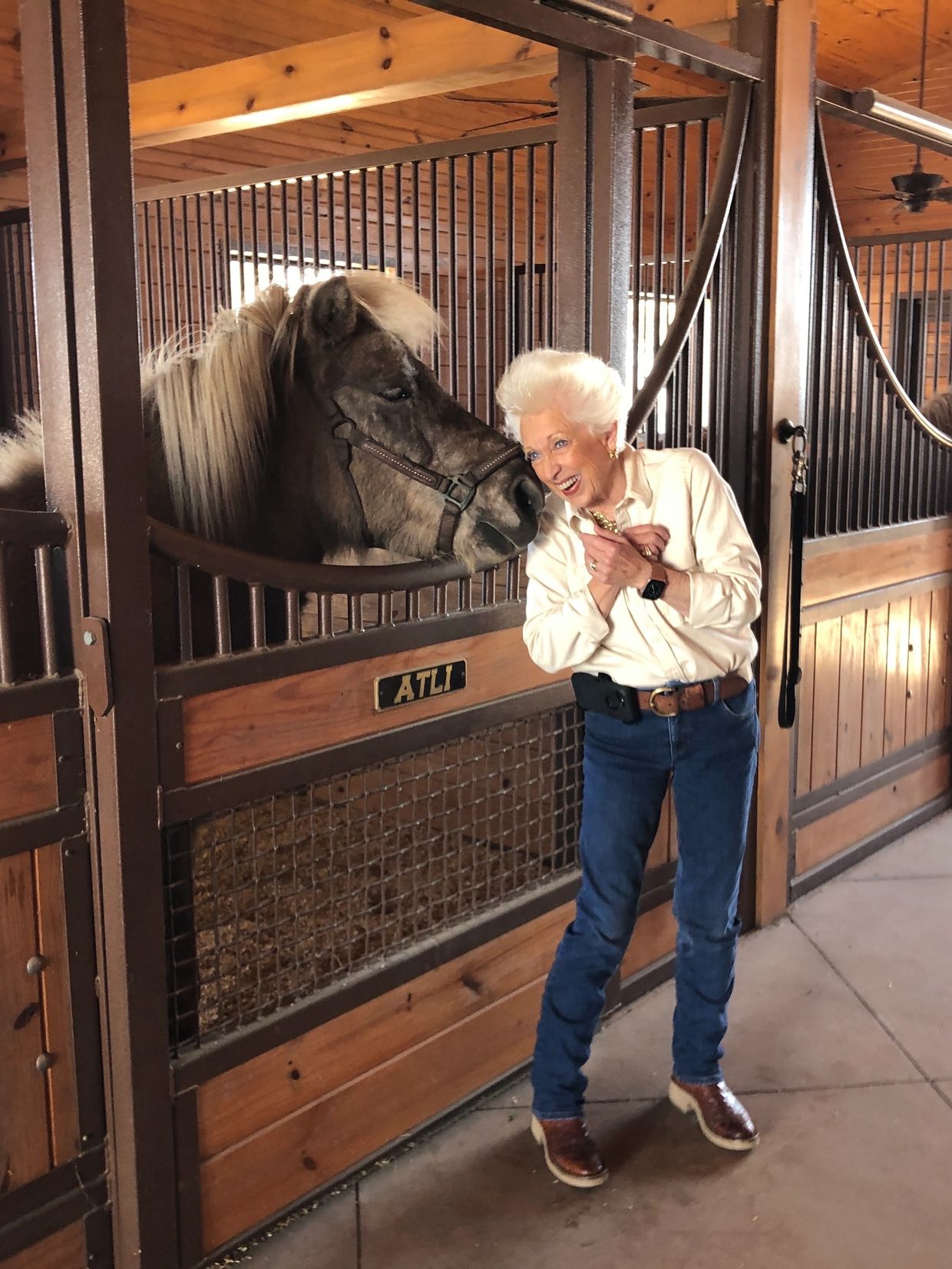 Our ranch animals are members of our family. Above, Austin in the barn kissing her horse.